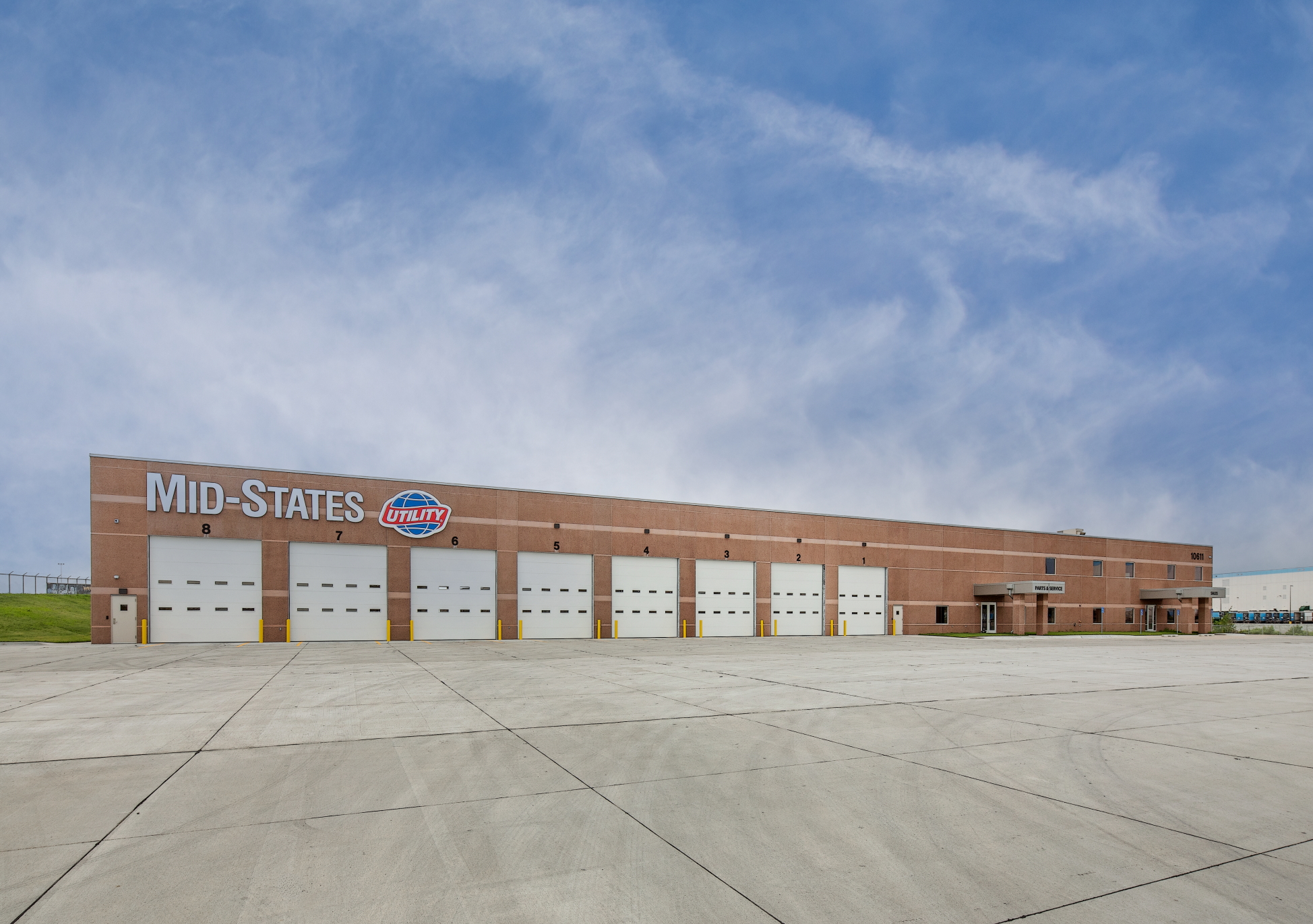 The new location stands as a key regional hub designed to enhance Mid-States Utility’s operational capabilities and customer service. The project features a modern, state-of-the-art trailer shop, an expansive parts warehouse, a driver’s lounge, and modern administrative offices. A notable aspect of the project includes over 11 acres of exterior paving, designed to accommodate the extensive inventory and traffic flow of large semi-trailers.